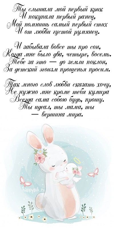 Найдете разнообразные фото с поздравлениями от сыновей и дочерей, которые помогут выразить свои чувства и пожелания. Некоторые изображения содержат красивые цитаты и стихи о материнской любви, другие - просто теплые слова и пожелания счастья и здоровья.