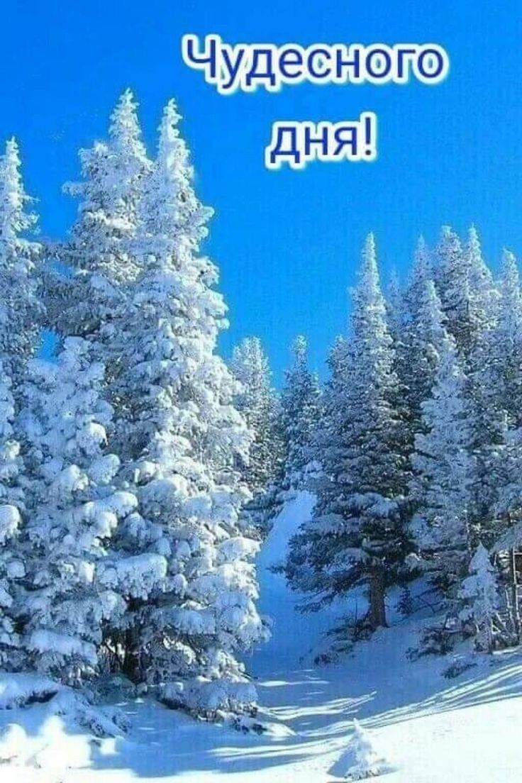 Представьте себе: за окном белый пушистый снег, ветерец ласкает щеки, а на картинке изображены заснеженные деревья, покрытые искрящимся инеем. Зимние картинки «Добрый день» напомнят о красоте природы и волшебстве зимы.