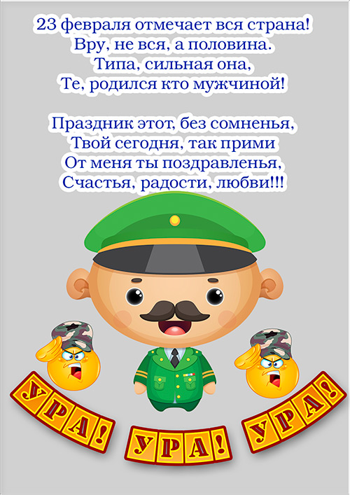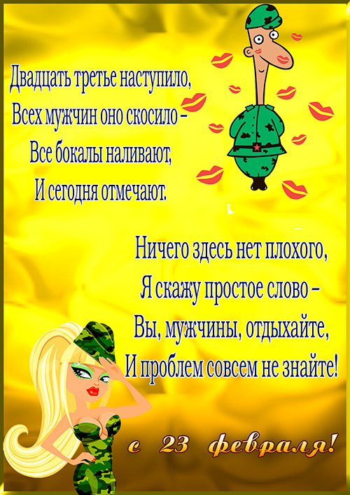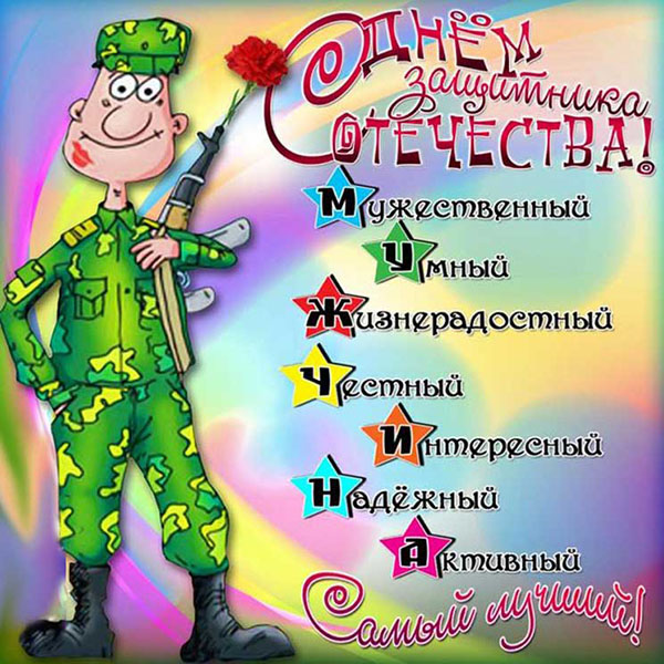 Поздравление с 23 февраля в прозе: этот день – символ мужества, силы и защиты. Опора и поддержка для всех нас, ваши усилия и труд неоценимы. Ценим самоотверженное служение для защиты нашей Родины и благополучия народа. В этот день желаем здоровья, счастья и любви. Пусть дела всегда будут успешными, а дом – уютным и теплым, окружают только верные и надежные друзья. Пусть каждый день будет полон радости и любви. Скачать бесплатно эти открытки можете по ссылке на нашем сайте. С праздником вас, мужчины!