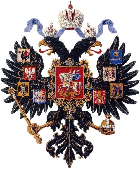 Один из голов орла смотрит на запад, другой - на восток, что символизирует стремление России к развитию и присутствию на мировой арене. Под орлом расположены два крылья, которые также украшены символами и орденами.