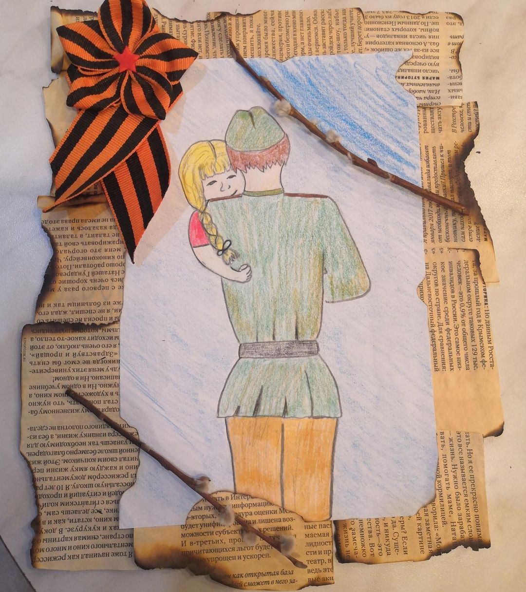 На рисунке ко Дню защитника Отечества часто изображаются силуэты военнослужащих, стилизованные флаги, символы вооруженных сил, военная техника или пейзажи, ассоциирующиеся с армией и защитой границ. Эти изображения напоминают нам о важности службы во имя мира и безопасности нашей страны.